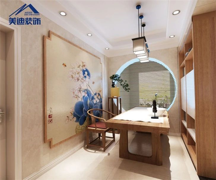 人工照明:书房内的写字台或电脑台,在台面上方应装电源线、电脑线、电话线、电视线终端接口;从安全角度考虑,应在写字台或电脑下方装电源插口1-2个,以备电脑配套设备电源用;照明灯光若为多头灯应增加分控器,开关可安装在书房门内侧。