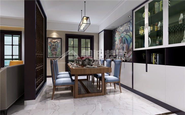 3、新古典主义风格的地面设计用石材天然的纹理和自然的色彩来修饰人工的痕迹。使客厅和餐厅的那种奢华、档次和品位毫无保留地流淌。在家具配置上,多选用板木结合的实木家具,家具漆面具有封闭漆效果,不仅能将木皮的纹理尽情展示,在徒手触摸时,还能感受到油漆饰面后的光滑、平整。