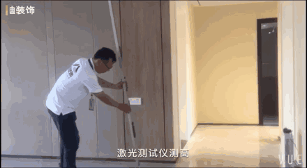 美迪监理钟玉林正在进行墙面垂直平整度检查,他说墙角偏差与墙面垂直平整度这两项指标除了能体现房子墙面的外观美感,还能检查出墙面的结构是否有问题。