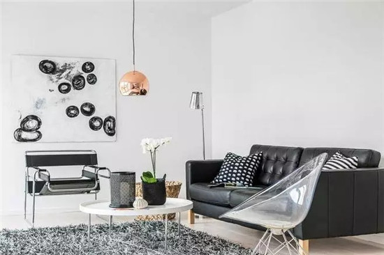 如果觉得北欧家居风格抓不准,可以利用充满北欧元素的地毯和极具北欧风格的落地灯加以点缀,满屋的北欧气息让人仿佛置身异国。