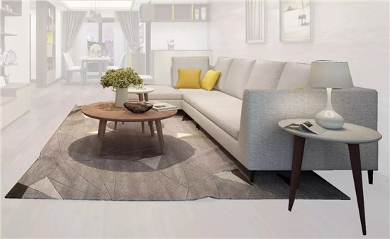 经典的黑白灰家居,看起来就很高级。地毯也延续了这份经典,三色的渐变让家居色块承接得恰到好处,与金属质感的钓鱼灯搭档,赋予家居新的时尚品味。