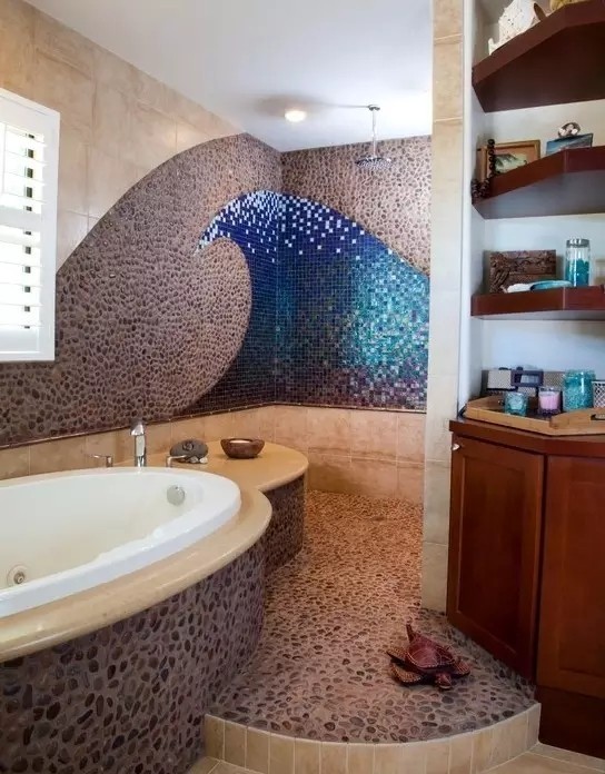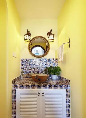 ▼地中海的味道,用蓝色的马赛克营造浪花的感觉。