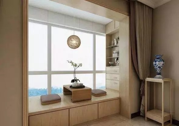 在飘窗装上榻榻米,不仅实现了强大的收纳功能,还融合了飘窗的休闲和窗外的绝美风光,绝对是一流的设计。