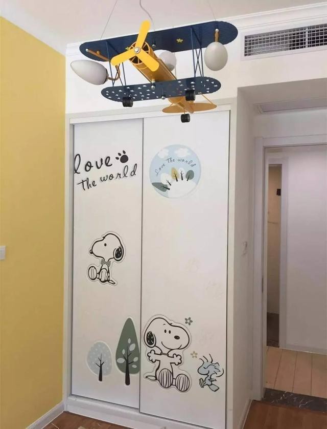 而对于家中儿童房的衣柜,还可以在上面贴上一些有趣又可爱的图案,孩子一定也会喜欢的。当然,至于具体贴什么,你可以征求孩子的意见!