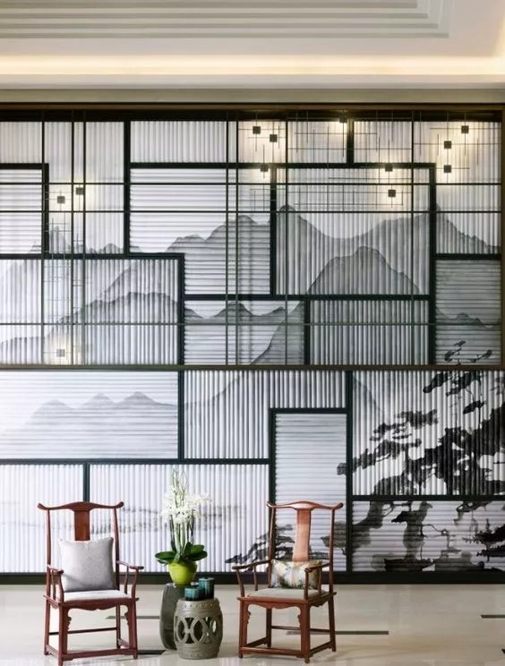 屏风是中式风格中具有代表性的装饰元素,也是现代家庭中应用较多的元素之一,中式屏风的制作样式多种多样,有挡屏、实木雕花、拼图花板等,还有一些黑色描金屏风。