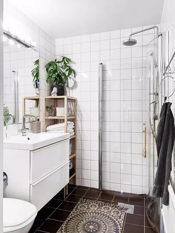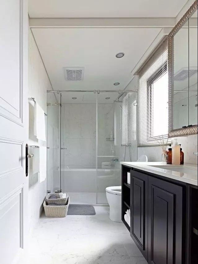 卫生间小就可以直接划分为淋浴、马桶、洗手台三个区域,择合适的摆放位置,不仅进出方便,还能增强空间感。