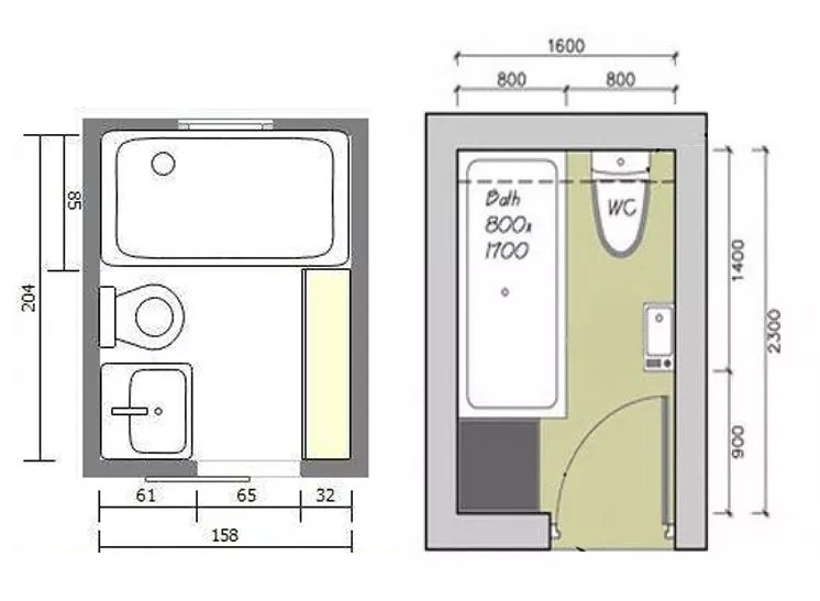 小户型卫生间常见的布局有正方形和长方形两种: