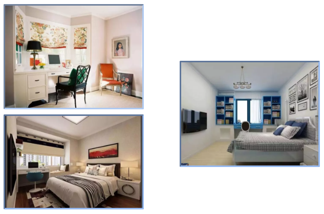 如果房间空间比较小,不妨可以利用飘窗的这个位置,来增加一个书桌的位置,当你长时间对着电脑工作,眼睛疲惫时,只要抬头,就能看见外头的青草绿树。
