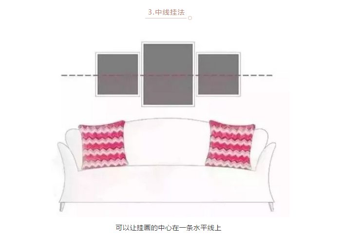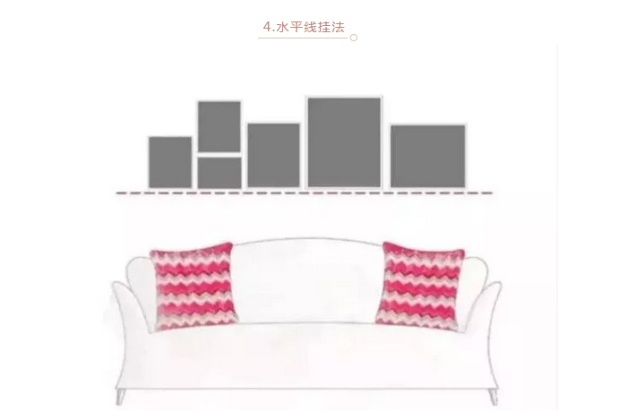 下水平线平齐挂法比较随意,如果装饰画是表达同一主题,画框的样式和颜色都一致的话,装饰效果会更好