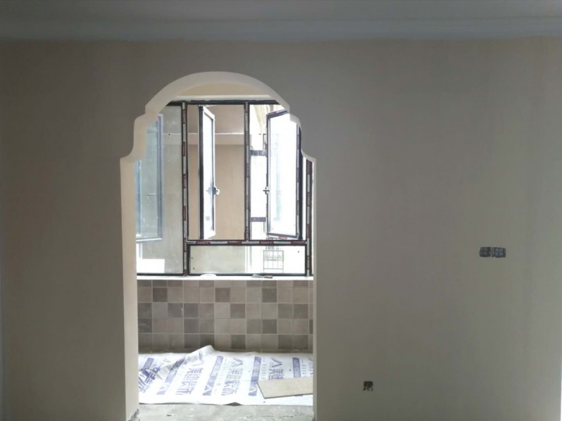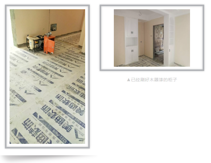 进门可以看见地面都保护得好好的,可见施工工人的工作做得十分细致。进门看见工人正在刷墙漆,但是没有任何刺鼻的气味。