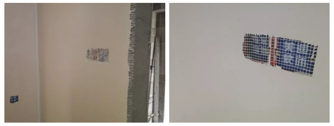 △布置网格布是指使用网格布修补墙面裂缝,防止墙面开裂,保证乳胶漆底层的牢固性!