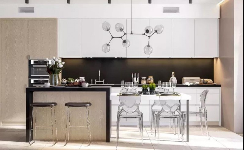 而且使用吧台来代替餐桌用餐也是别有情调的~另外注意,要是用吧台来代替餐桌的话,记得安上合适的吊灯哦。