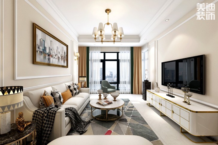 3.简欧风格在地面的搭配运用上,可以采用大面积的地毯进行装饰,会让整个装饰空间变得更加舒适,建议选择花纹地毯,增加空间的立体感。