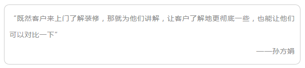 当被问及到“如何提升业绩”,孙方娟认为需要感谢网销与营销人员前线的付出:联系客户、约客户上门等事情,后期的接待结果不仅仅是个人的努力,更是整个团队合作的结果。