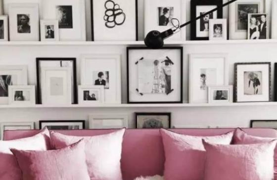 所以,你也可以这样大胆把沙发往前挪10cm,你就有了新款沙发背景墙,比起贴壁纸、挂十字绣,在沙发后面固定几排壁式图片架,你可以随时换掉沙发背后的照片,还不用担心墙上全是胶点儿或是隐形挂钩。即使你以后想把沙发一开,这里也照样是一面有趣的墙。