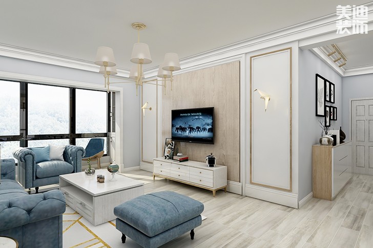 将粗犷冷峻酷感十足的工业风,加入淡彩色调,典雅气息瞬间在整个室内蔓延开,还带有稍许的温暖触感。用水泥墙、红砖墙奠定空间风格,加入白色和淡蓝色柔化工业风的冷峻感,客厅与卧室合二为一,这样的设计让视觉上更具通透明亮。