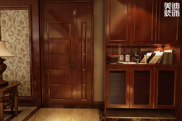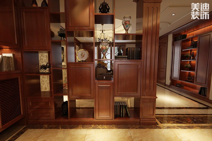 同样以香槟色为主色调的餐厅,用深色的家具和彩色的装饰瓷器点缀,加上彩色的植物,吃个饭都能觉得有活力。书房内的色调从顶部到地面,是白、灰、深木色的递进,浮躁的心也得以慢慢沉淀,书桌正上方的吊灯是整个书房里最集中的大光源,更能让人摒弃杂念,专心工作。