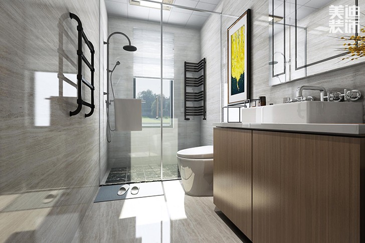 对于空间稍微大一些的卫生间来说,在卫生间里面的角落可以安装浴房,把洗浴单独分开,避免水花、水汽扩散,有效干湿分离。