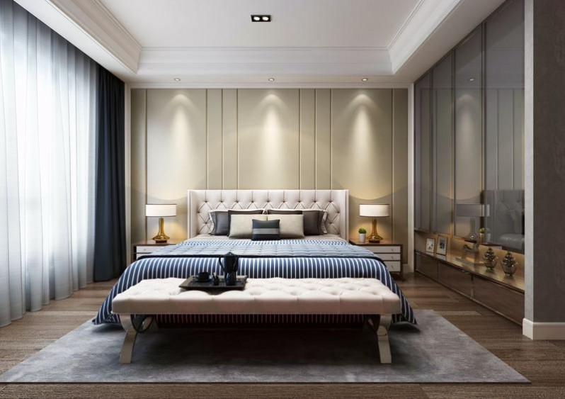 卧室是休息空间,应该具有安静、温馨的特征,所以卧室装修从选材、色彩、室内灯光布局到室内物件的摆设都要精心设计。