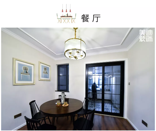 木质的餐桌搭配简单的餐椅散发着浓郁的美式气息,简单两副装饰画就避免了墙面的空洞感,灯具也很简单实用。