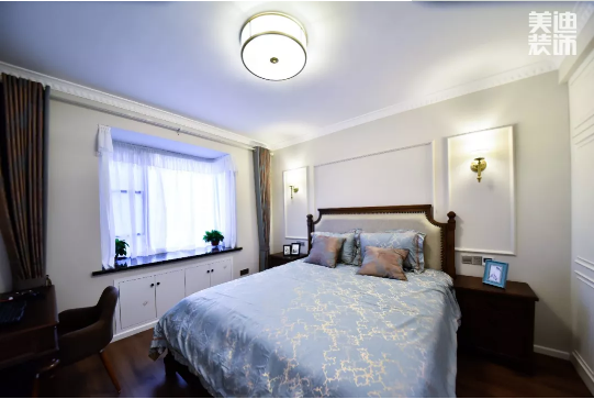 主卧是屋主为父母安排的房间,通过取其神韵不摆其形的风雅意境,使得整个空间呈现出典雅又不乏时尚的特色,简约轻盈,无疑不体现了空间清雅自然。
