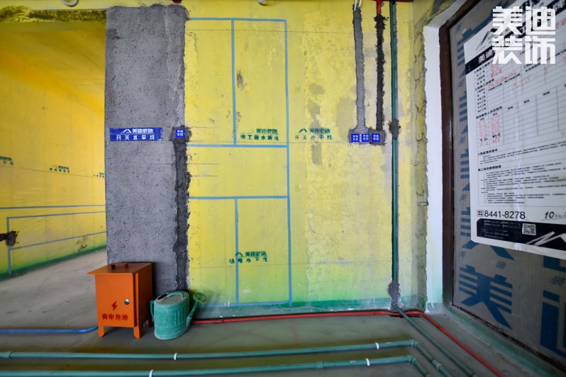 六道生命线做完之后,下一步就是放样阶段和水电阶段。别看就这简简单单的几步,但它们却是与后续的施工过程息息相关。装修施工的每一个环节,美迪都有严格把控,为多年以后也能让居住者感受到美迪的好品质。