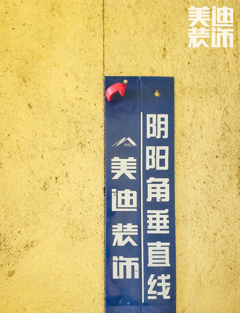 ▲ 墨斗弹线已完成,水电师傅定开关插座高度,门窗师傅量数安装,贴地砖师傅都要已这条线为标准。