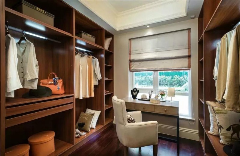 对于大户型的房子而言,主人衣服较多的话,都会在家里隔一个空间来做独立的衣帽间,这种衣帽间的储物功能真的是非常的强大,恐怕会令不少的女生们羡慕吧!