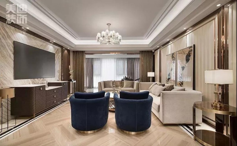 暖色系色调,线条简单,主要以干净、实用为原则,高档的材质体现生活的高品质。