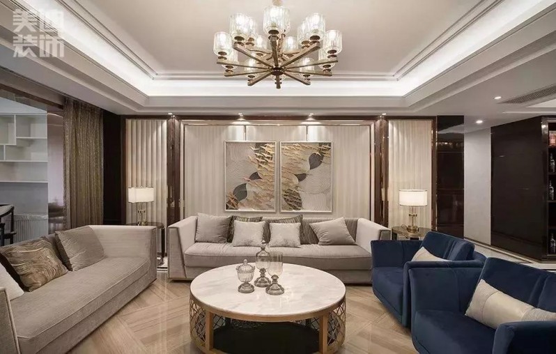 整个空间色彩冷静,简约的现代家具,造型独特而又充满金属线条的茶几,家居摆件,都体现了业主追求高品质生活的态度。