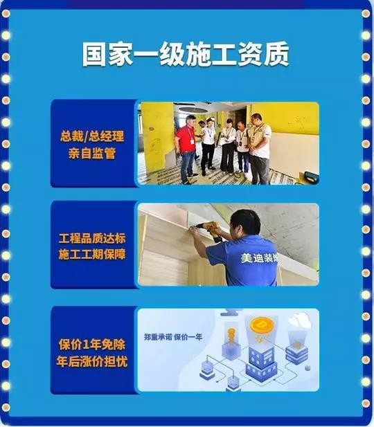 还在犹豫年前还是年后定装修吗?美迪装饰郑重承诺保价1年,用今年的价格装明年的新家!更享总裁/总经理亲自监管,确保工程品质达标、施工工期保障。