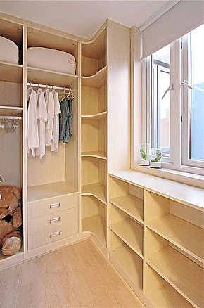 衣帽间设计主要分为开放式、独立式、嵌入式三种,那么要怎样在小户型中腾出一点空间来满足自己的愿望?