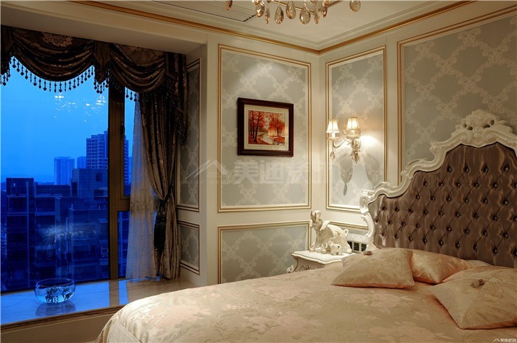 主卧室不仅庄重与优雅,更加多了一份惬意与自然,飘窗不管是白天还是晚上都别有一番情调。更以舒适为主,搭配精致的点缀,诠释优雅生活。