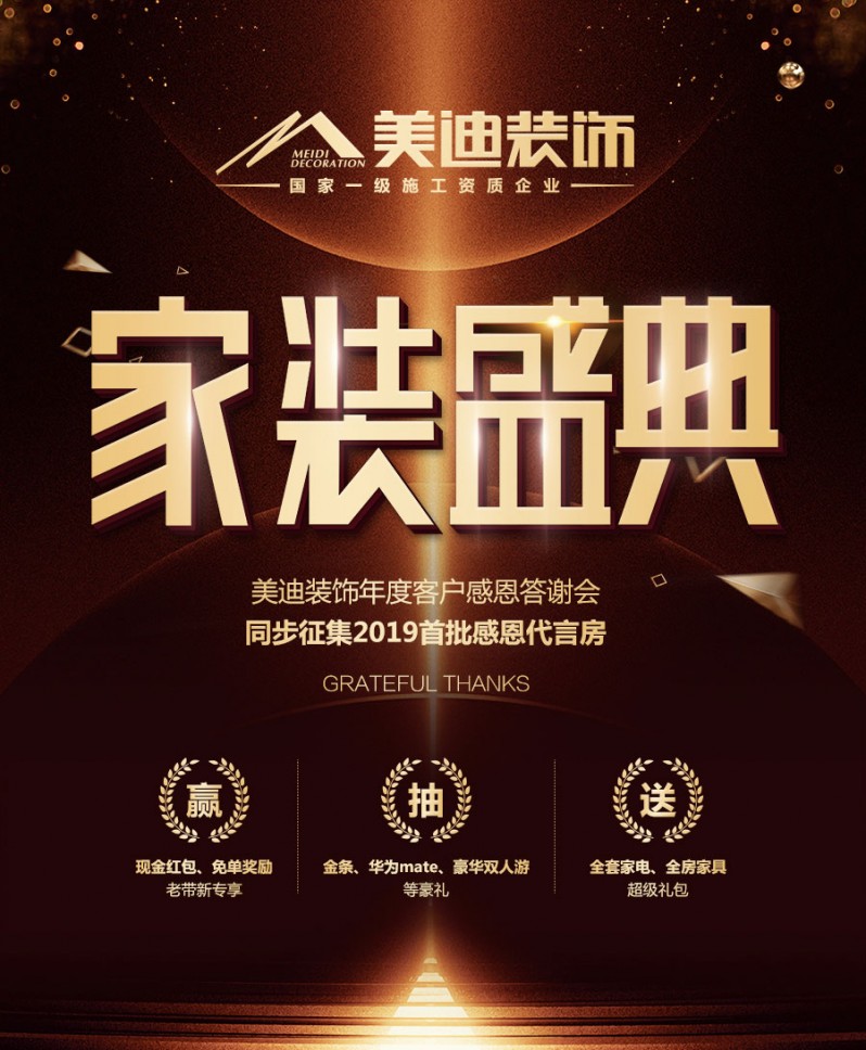 回首2018,唯有「感恩」二字才是小迪最想说的。美迪装饰家装盛典年度新老客户感恩答谢会现已开启,作为2019年的开年大戏,我们准备了超大钜惠以及超多豪礼回馈大家!