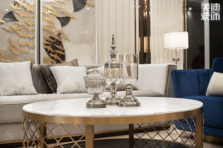 赵益平院长的设计可不仅仅止步于艺术,而是对艺术进行升华,充满港式复古和现代风的软装陈设,还有整个客厅和餐厅都运用了非常多的线性元素,华美大气的同时,还带着一股轻奢的艺术感。