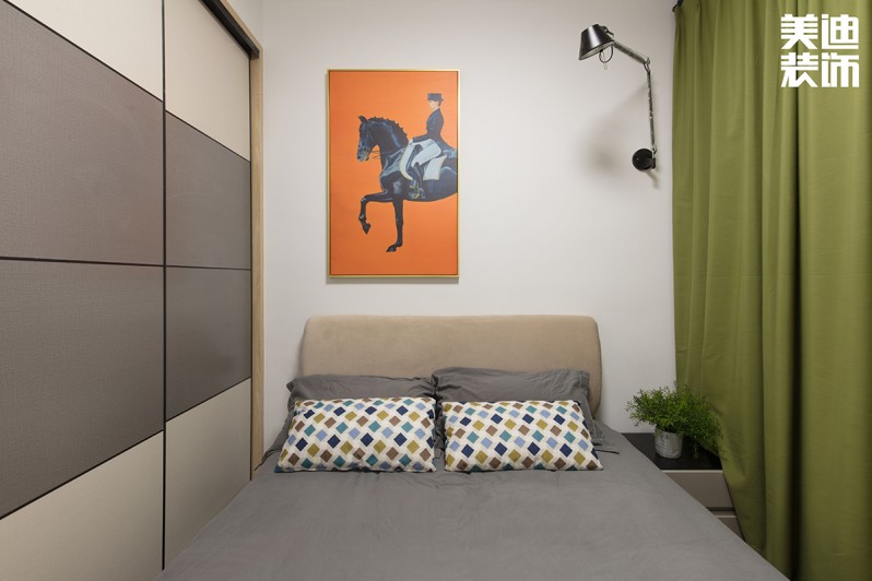 不得不说现代风格真是一个包容性很强的风格,杨敏设计师在这套风格设计上,前期硬装以黑白灰为主色调,后期软装适当加入了轻奢风的元素,配以孔雀绿的沙发和窗帘做点缀,墙面再用白色烤漆护墙板搭配线性灯,让整个空间瞬间生动了起来。