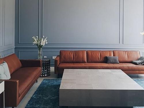 3、不妨大胆尝试彩色的线框墙,深灰、墨绿或藏蓝,给家带来不一样的复古味道。