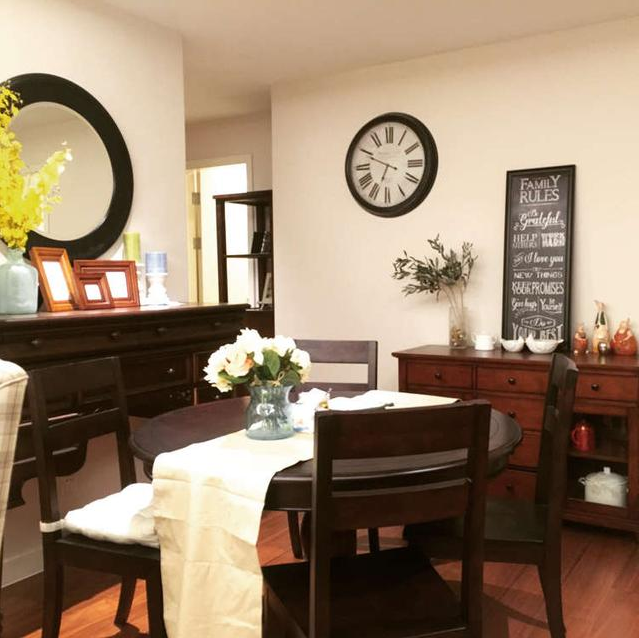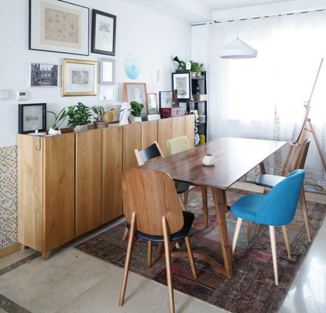 5、餐边柜上方的墙面可以成为一面照片墙。