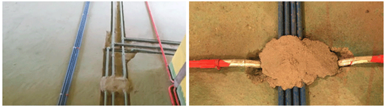 在各强弱电交叉处,用锡箔纸包裹,其目的减少信号干扰。同时,定距安装管道卡口。在工地现场,我们的项目经理也提醒业主,在水电验收时,可注意几点: