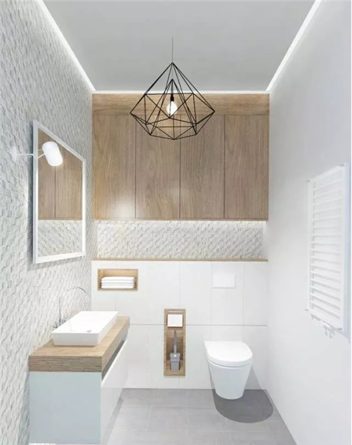 除此之外还可以将卫浴镜与嵌入式收纳结合起来,保证美感的同时,还可以在墙体上方放置物品。