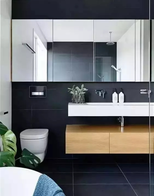 马桶上方放镜子除了日常的使用功能,还有扩容的功能。镜子可以反射、折射、增加室内的亮度,让空间在视觉效果上翻倍。