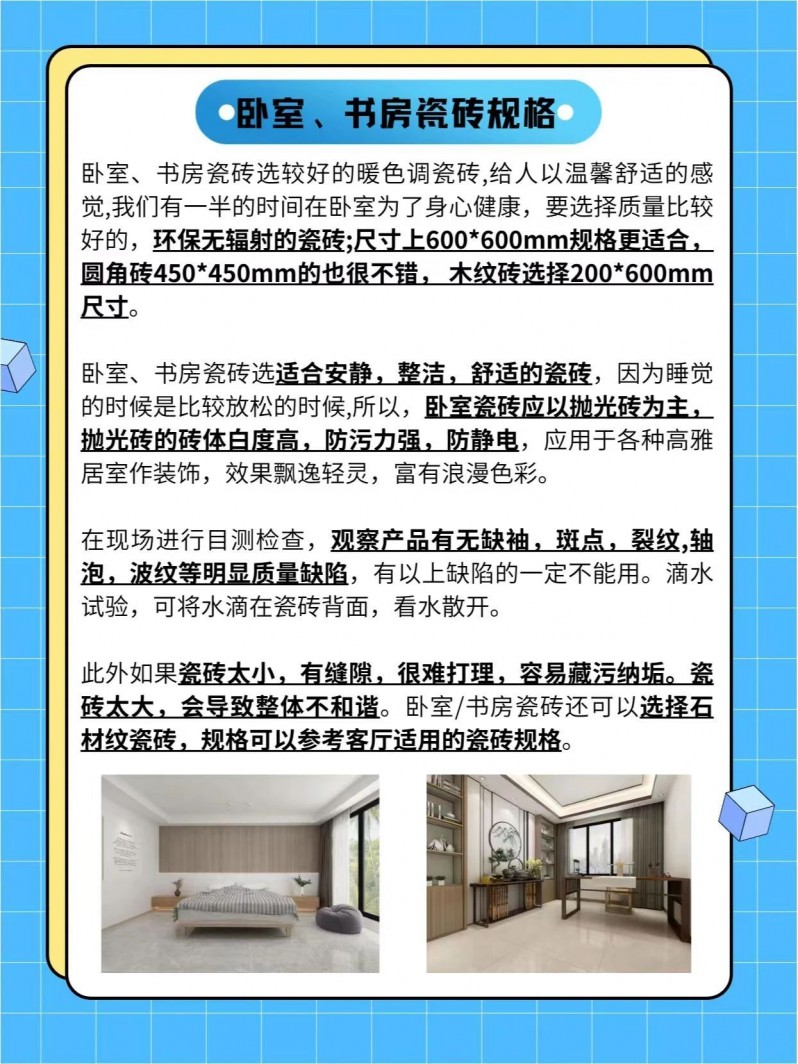 (4)瓷砖规格太大或太小可能会导致铺贴施工本钱以及运输搬运本钱增加。
