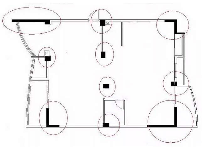 如果你有自己房屋的户型图,可以打开看看,如图所示,在工程图上标注为黑色的墙体就是承重墙,而标注为白色部分的墙体为非承重墙,这类墙体可以进行适量拆改。