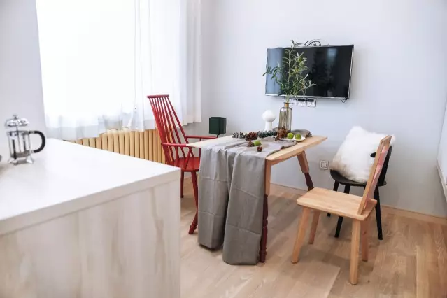 客厅通过白色与木色来提亮空间,搭配简约而别致的功能性家具,整体看上去淡雅、柔和,带来一种宁静的感觉。
