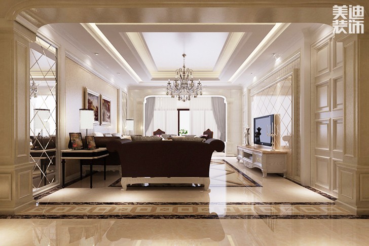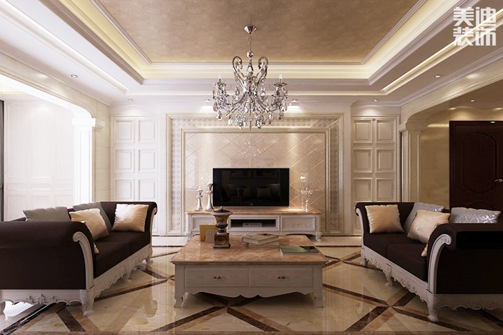 万科城260平欧式装修案例图--客厅